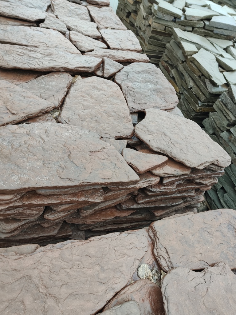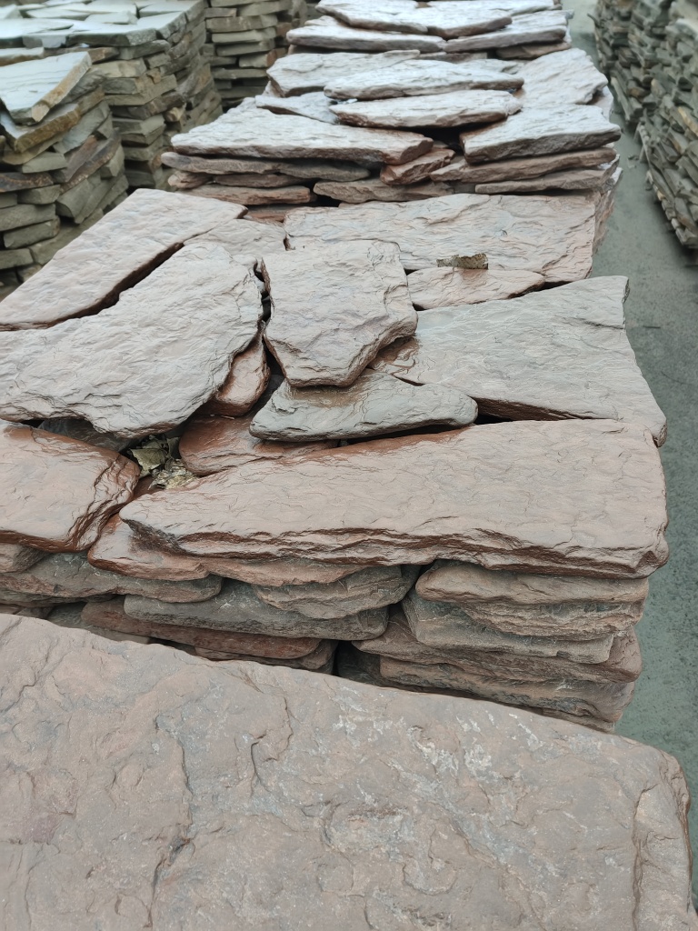 Плитняк песчаник дракон красный галтованный для облицовки цоколя, отмостки 20-35 мм