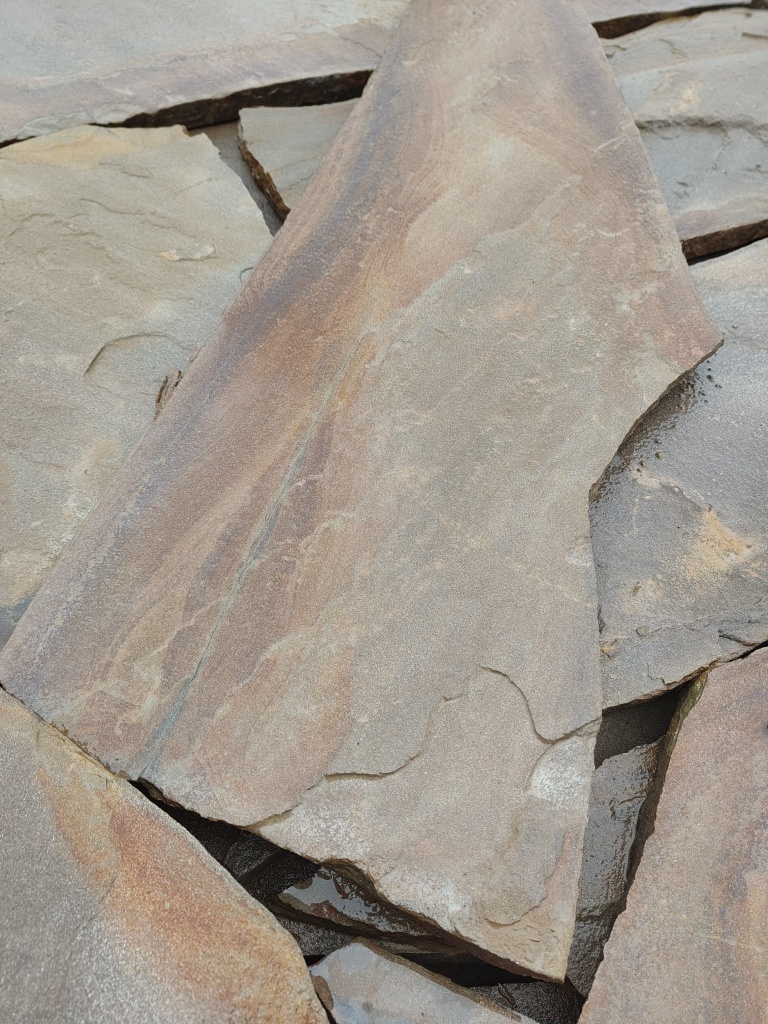 При заказе камня одного вида с одного месторождения в разные периоды времени, а тем более в разные года - возможны отклонения в цветовом оттенке камня, не влияющие на прочностные характеристики и срок службы материала. В практике применения плитняка в строительстве, различия в цветовых оттенках и однородности рисунка, а особенно в условиях ручного производства и добычи камня допустимы и не являются браком, дефектом, препятствующим использованию облицовочного материала.