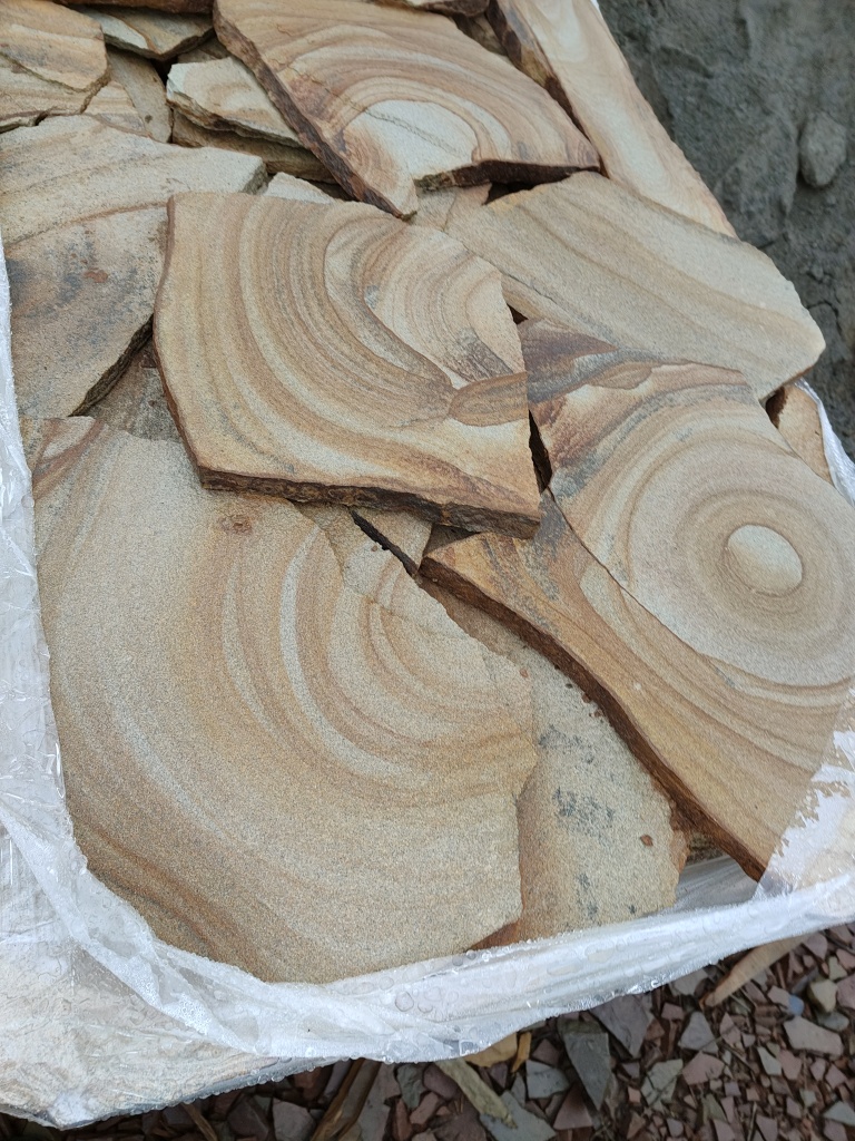 Песчаник жёлтый с разводами для мощения дорожек 30-35 мм